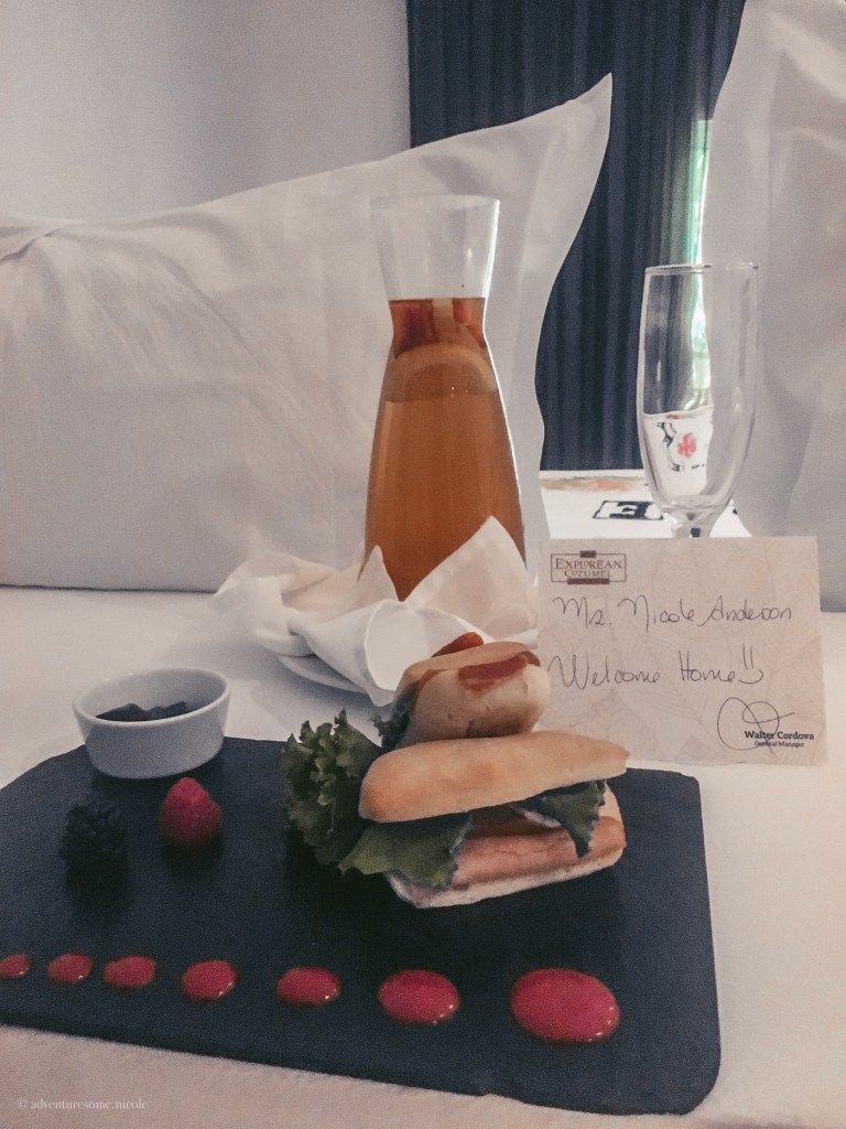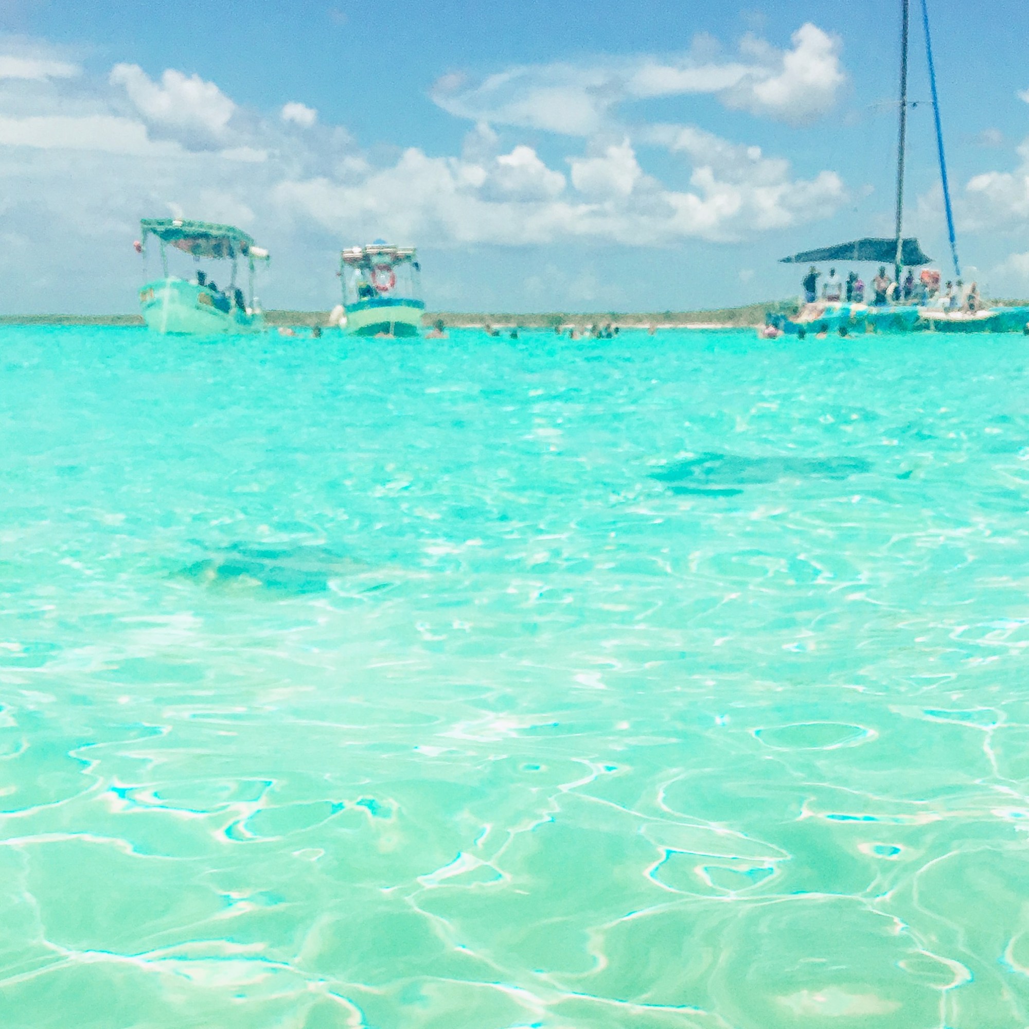 The next morning, I got my basket, had breakfast on my patio, and then got ready for snorkeling at El Cielo! El Cielo is a shallow part of the ocean near the coastline of Cozumel on the south part of the island where there’s a lot of starfish! I highly suggest going there! Even if you aren’t staying in Cozumel, take an excursion or boat ride over from Playa del Carmen! We stopped at three different places: Columbia Shallow, El Cielo, and El Cielito. The seas were a bit rough, so I didn’t stay long out there and got on the boat early. I’m not a huge swimmer so snorkeling isn’t too much of my thing. When we got to El Cielito, we all got out of the boat onto the sandbar. The water only went up to about our waist, and they brought out the beers, chips, and guac! We all just sat out in the sun and sandbar and turned up the music while watching all of the stingrays and fish swim around us!