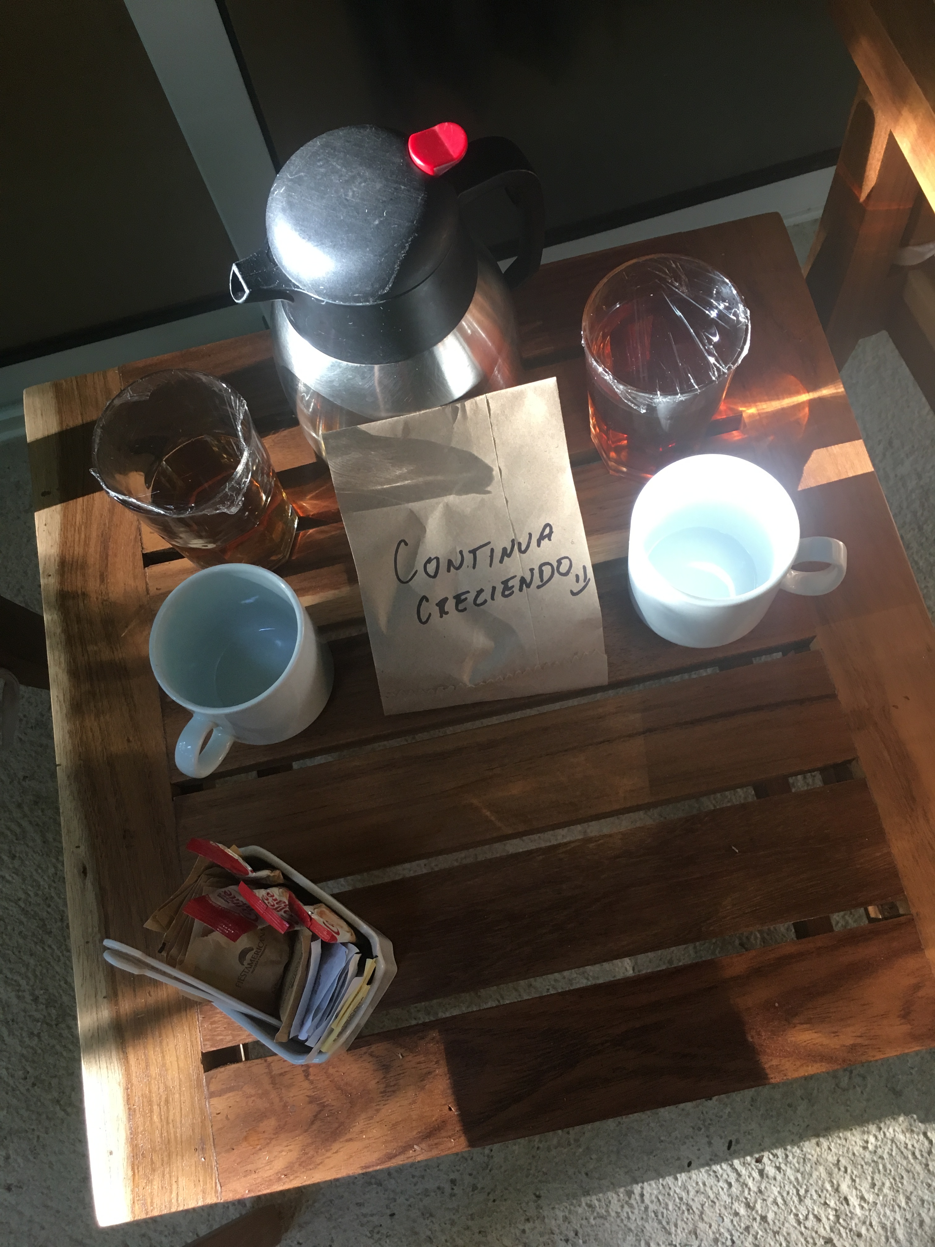 The first is your morning basket. Every morning, a basket is left outside of your room filled with fresh coffee, juice, and bread. You never have to order it, and they never knock on your door to wake you up. It just “magically” appears every morning. I looked forward to this the two mornings I was there. I would get my basket and take it to my patio and have breakfast there. The best way to wake up every morning.